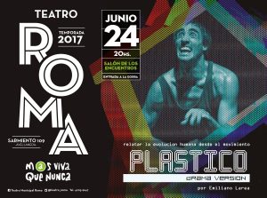 Sábado 24 de Junio 20:00 Hs – “Plastico, drama versión” Teatro Roma, Salón de los Encuentros. Entrada a la gorra.