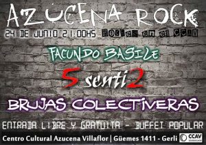 Sábado 24 de Junio 21:00 Hs – “Azucena Rock” Centro Cultural Azucena Villaflor, Gerli. Entrada libre y gratuita.