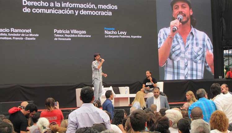 Debates sobre el derecho a la información y el rol que juegan hoy los medios de comunicación tuvieron su lugar en la mesa “Derecho a la información, medios de comunicación y democracia”, en la primera de las jornadas del Foro Mundial del Pensamiento Crítico, con la presencia de Nacho Levy, referente del colectivo «La Poderosa», que debía ser presentado por el periodista hispano-frances Ignacio Ramonet, quien se excusó por perder un vuelo.