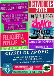 Fit dance, peluquería popular y clases de apoyo para primaria y secundaria, son algunas de las actividades que ofrece el club. Además, brindarán orientación y asesoramiento en búsqueda laboral y todos los sábados funcionará el almacén popular que permite a los vecinos y vecinas del barrio comprar distintos productos a un bajo precio.
