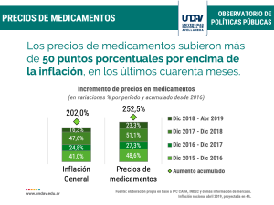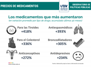 Según evidenció el Observatorio de Políticas Públicas de la Universidad Nacional de Avellaneda (UNDAV) los medicamentos aumentaron más de 250% desde diciembre de 2015, es decir, más de 50 puntos porcentuales por encima de la inflación general promedio.