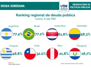 En términos de deuda pública, los niveles alcanzados representan ya un 77,4% del total del PBI, lo que también convierte a la Argentina en el peor país del ranking en la región.