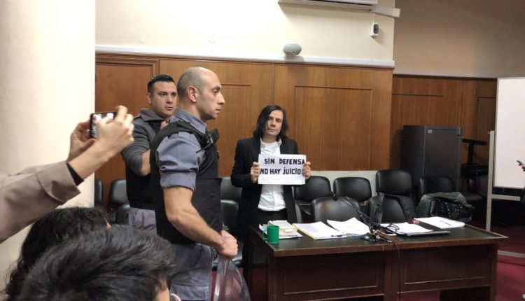 Pasó la noche en el Tribunal Oral Criminal n° 25. Se quejaba del maltrato de sus compañeros de celda, del sistema en sí. Hoy, se paró frente a todos y todas con un cartel que aseguraba «sin defensa, no hay justicia.»