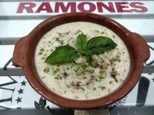 Picamos la cebolla y la salteamos en una sartén con aceite hasta que transparente. Sumamos el diente de ajo rallado, mezclamos, salamos y agregamos el caldo y la leche. Cuando rompe el hervor incorporamos las arvejas y cocinamos a fuego medio/bajo durante 10′. Añadimos la avena y la crema de leche light y lo dejamos en el fuego por 10′ más. Servimos como más nos guste, yo lo hice con hojas de albahaca y salsa inglesa.