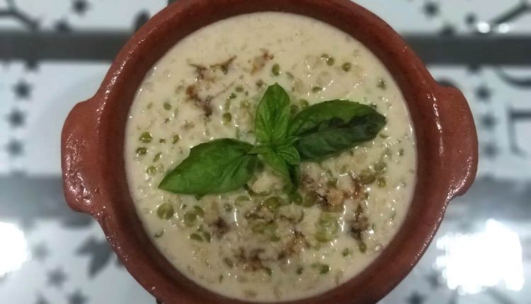 Picamos la cebolla y la salteamos en una sartén con aceite hasta que transparente. Sumamos el diente de ajo rallado, mezclamos, salamos y agregamos el caldo y la leche. Cuando rompe el hervor incorporamos las arvejas y cocinamos a fuego medio/bajo durante 10′. Añadimos la avena y la crema de leche light y lo dejamos en el fuego por 10′ más. Servimos como más nos guste, yo lo hice con hojas de albahaca y salsa inglesa.