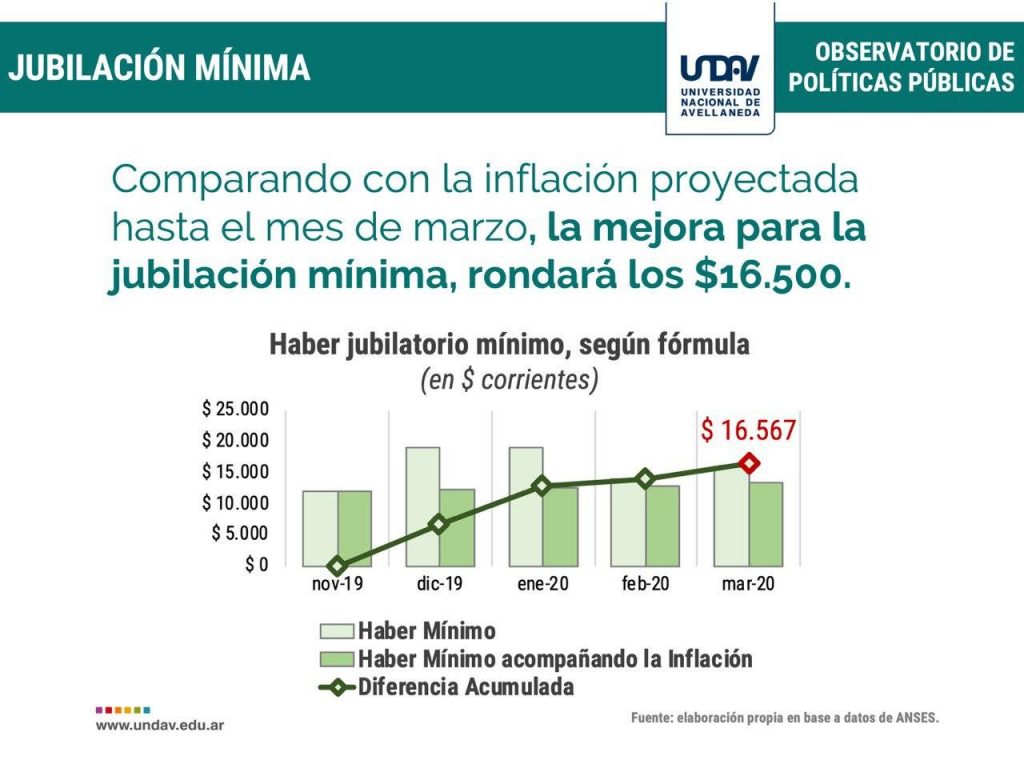 Proyectando inflación para el periodo diciembre/marzo de este año, se espera que el haber mínimo supere a la inflación en más de $16.567.