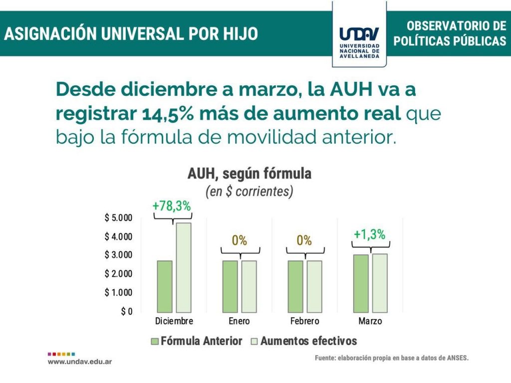 En el caso de la AUH, el shock que causó el bono de $2.000 entregado en diciembre de 2019, ayudó a recuperar el poder adquisitivo de este sector. Hay que tener en cuenta que más del 50% de las niñas y los niños se encuentran por debajo de la línea de la pobreza según datos del INDEC.