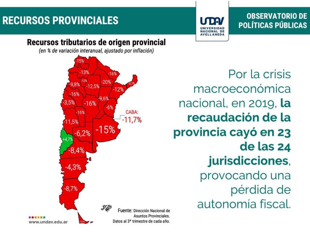 En 2019, en 23 de las 24 jurisdicciones argentinas se registró una caída en la recaudación.