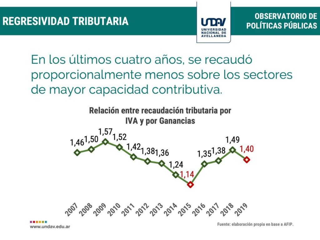 La administración anterior (inspirada en la corriente de pensamiento económico llamada Economía de la Oferta,) con el argumento de aumentar la competitividad e incentivar la inversión, llevó adelante una serie de medidas de índole fiscal que impactó en la estructura impositiva haciéndola más regresiva.