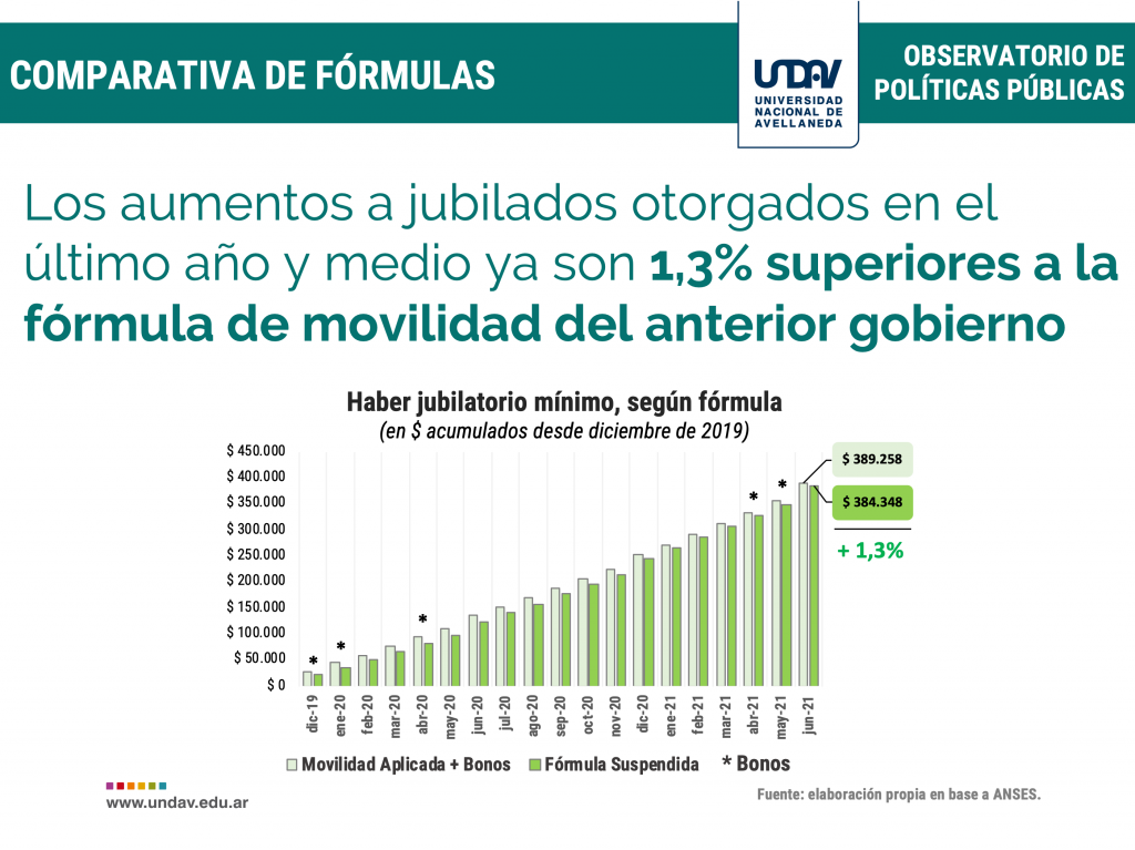 Asimismo, entre diciembre de 2019 y junio de 2021, una persona que cobra la mínima habrá percibido $4.910 más que si los haberes se hubieran ajustado por la fórmula anterior.