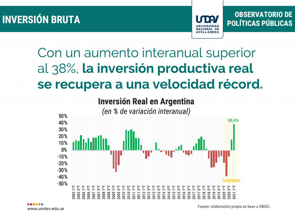En el primer trimestre del año 2021, la participación de la inversión sobre el producto alcanzó el 17,3% y es el valor más alto desde el tercer trimestre del año 2011.