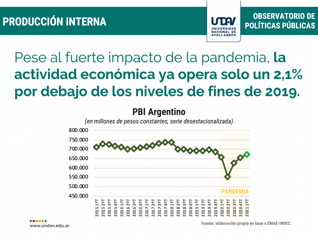 La pandemia golpeó fuerte la recuperación de la actividad económica. Sin embargo esta ya opera solo un 2,1% por debajo de los niveles de fines del año 2019.