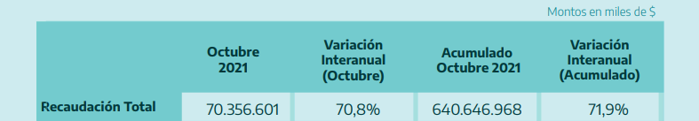 La recaudación acumula $640.647 millones entre enero y octubre