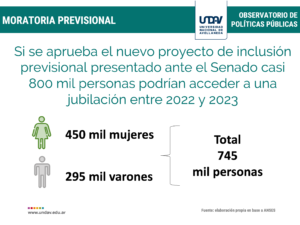 El componente del proyecto de ley para personas en edad jubilable podría garantizar cobertura previsional a una cantidad considerable de personas en su primer año y medio de vigencia. Podría alcanzar aproximadamente a 800 mil personas entre la segunda mitad de 2022 y el año 2023.