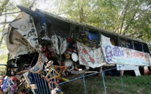 Con el correr de los días el micro que quedó destrozado al costado de la ruta se convirtió en un santuario. Se llenó de flores, cruces, y fotos.