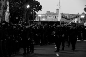 Con una fuerte presencia policial, durante la tarde del frío viernes decenas de organizaciones se concentraron en la Plaza de Mayo y marcharon hacia el Congreso de la Nación para reclamar pensión reparatoria y un acompañamiento en salud integral para una vejez digna. A los reclamos se sumó el pedido de reincorporación para aquellos despedidos estatales que ingresaron bajo la Ley de Cupo Laboral Travesti Trans.