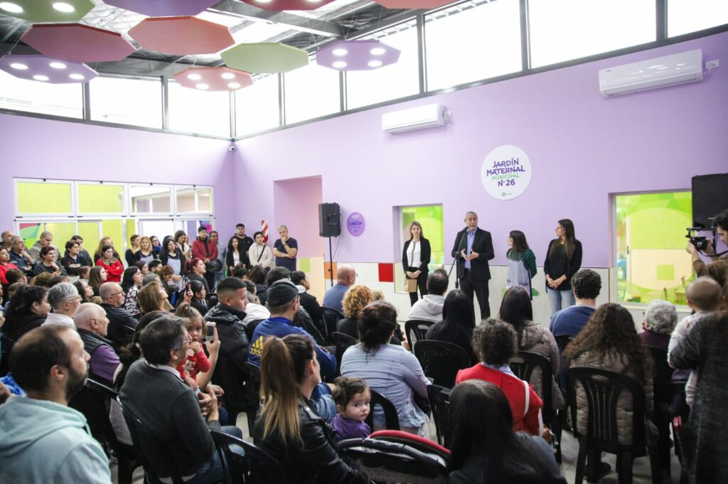 El Maternal Nº 26 cuenta con 475 mts2 de los cuales 360 son cubiertos. Allí se hicieron cuatro aulas, dos de ellas para niñxs de 2 años, otra para lactantes y la última para deambuladores, todas con sus correspondientes sanitarios. Además tiene espacios para su dirección, salón de usos múltiples y patios internos. La inversión fue de $131.949.127,52.
