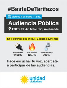 Convocan a audiencias públicas en la Provincia de Buenos Aires bajo la consigna #BastaDeTarifazos