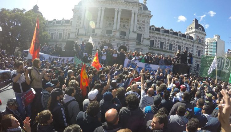 Luego de haber sido brutalmente reprimidos por la Policía Bonaerense, trabajadores del Astillero Rio Santiago volvieron a manifestarse junto a 20 mil personas a la sede de la gobernación provincial, donde iban a ser recibidos para una reunión de negociación paritaria, antes que las fuerzas de seguridad comenzaron a coaccionar a los manifestantes, en el marco del paro de estatales convocado por ATE en el día de ayer.