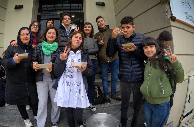 Los estudiantes secundarios nucleados dentro de los distintos centros de estudiantes realizaron una actividad bajo la consigna "Con hambre no se puede estudiar" con el objetivo de visibilizar el difícil momento que atraviesa la educación pública en nuestro país.