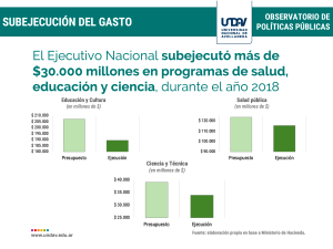 Según el último informe publicado por el Observatorio de Políticas Públicas de la Universidad Nacional de Avellaneda (UNDAV) el Gobierno subejecutó más de $30.000.000.000 en programas de Salud, Educación y Ciencia, durante 2018.