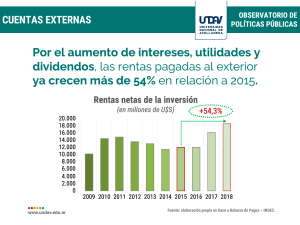 Y remarca: que “el costo de la recesión fue amplio y difundido y, del canal financiero, rápidamente se contagió a la economía real, con secuelas sobre el empleo y la distribución del ingreso”. En este sentido, por el aumento de intereses, utilidades y dividendos, las rentas pagadas al exterior ya crecen más de 54% en relación a 2015: un rubro que se mantuvo indemne al efecto cambiario.