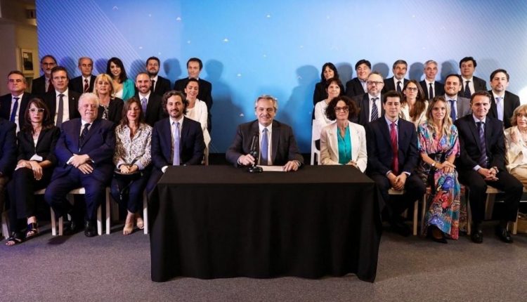 Lo siguieron los ministros de Ambiente, Juan Cabandié; Martín Soria, de Justicia; Roberto Salvarezza, de Ciencia; Tristán Bauer, Cultura; Paula Español, Comercio, Luana Volnovich, titular de PAMI; Pablo Ceriani, presidente de Aerolíneas Argentinas; y la titular de la Anses, Fernanda Raverta.