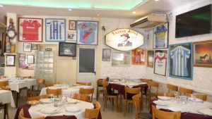 Cuando entras a un bodegón probablemente no puedas evitar mirar la decoración. Banderines de fútbol, camisetas deportivas, patas de jamón y salames colgando se mezclan como los hilos de un tejido. Se suman las fotos antiguas, las fotos de algún personaje renombrado cuando visitó el lugar, publicidades antiguas y miles de adornos de distintos lugares del mundo.