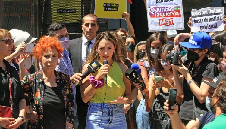 Tras dar a conocer el fallo, el colectivo de Actrices Argentinas convocó a una protesta frente a la Embajada de Brasil en Buenos Aires. Allí Thelma estuvo acompañada de actrices, activistas, mujeres y diversidades autoconvocadas.