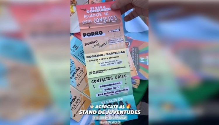 La campaña se centró en brindar información sobre el consumo de estupefacientes. «Si vas a consumir, acordate de estos consejos», indicó la portada del folleto.