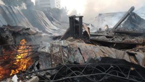 Todo comenzó alrededor de las 10.30 de la mañana en una fábrica de aerosoles, donde se escucharon explosiones. Pero luego, el fuego afecto a una empresa de colchones vecina.