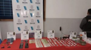 En el lugar, la policía incautó 1 kilo de marihuana fraccionada en bolsas de nylon. Además, encontraron balanzas, elementos para fraccionar la droga y para cortar, además de dinero en efectivo y teléfonos celulares.