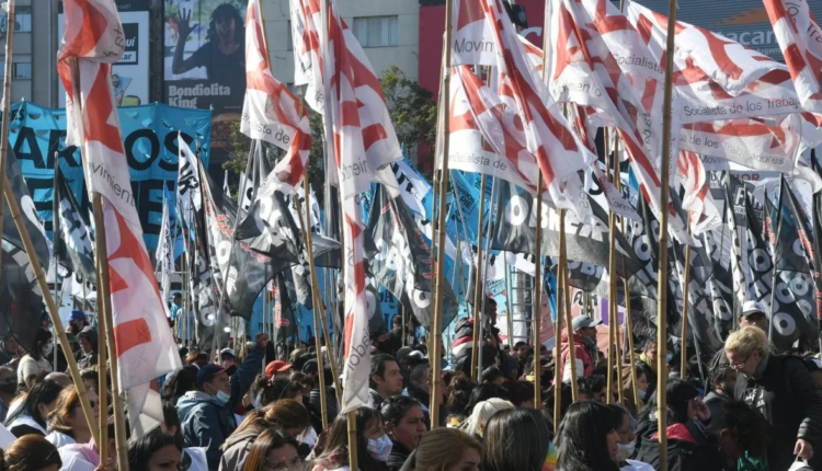 La protesta se manifiesta desde el Obelisco hasta la avenida Belgrano. Los militantes avanzarán hacia Plaza de Mayo para exigir un bono y la reapertura del programa Potenciar Trabajo.
