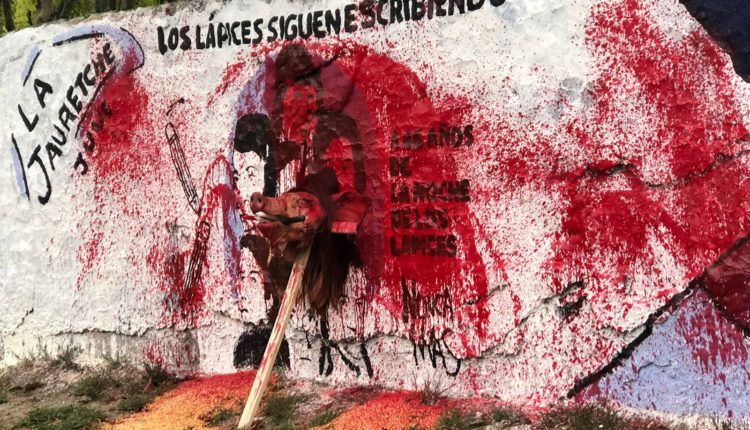 Mayra Mendoza publicó en su cuenta de Twitter una foto del mural que recuerda la Noche de los Lápices, titulado “Los lápices siguen escribiendo” donde se lo puede observar vandalizado con pintura roja y con una cruz con una cabeza de cerdo apoyada en la pared.