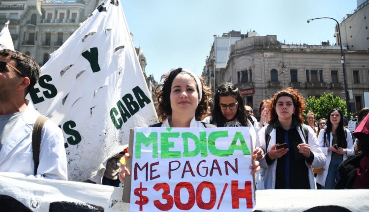 Médicos residentes y concurrentes porteños que continúan con un paro por tiempo indeterminado, movilizaron nuevamente hacia el Ministerio de Salud de la Ciudad de Buenos Aires en reclamo de una “urgente recomposición salarial que cubra la canasta básica” y “salario y ART para concurrentes”.