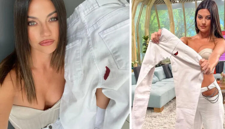La modelo fue invitada al programa de televisión “A la Barbarossa”, y mientras bailaba se vio en cámara que tenía el pantalón manchado como consecuencia de su menstruación.