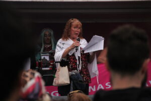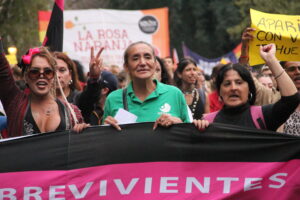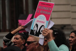 Entre otras consignas, se reclamó una pensión reparatoria y un acompañamiento en salud integral para una vejez digna.