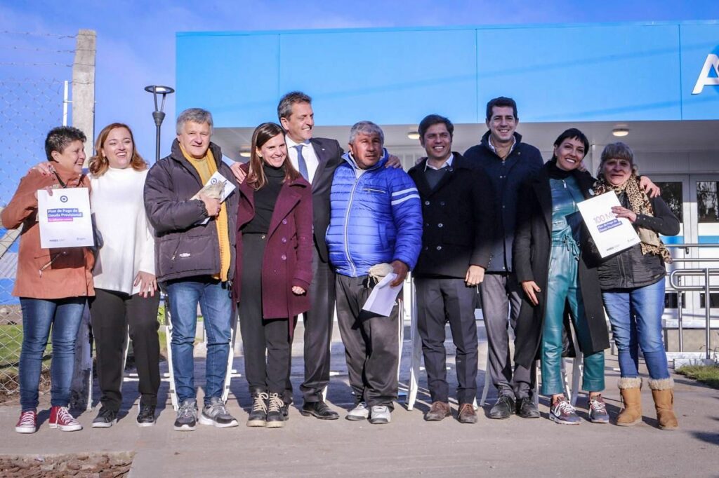 La intendenta de Quilmes, Mayra Mendoza, junto con el actual ministro de Economía de la Nación y precandidato a Presidente por Unión por la Patria, Sergio Massa, el gobernador de la provincia de Buenos Aires, Axel Kicillof; el ministro del Interior y precandidato a Senador Nacional, Eduardo Wado de Pedro; la directora ejecutiva de la ANSES, Fernanda Raverta, y la presidenta de la Cámara de Diputados, Cecilia Moreau, inauguraron este martes la nueva Unidad de Atención Integral (UDAI) de la ANSES en Ezpeleta, y entregaron la jubilación número 100 mil del Plan de Pago de Deuda Previsional.