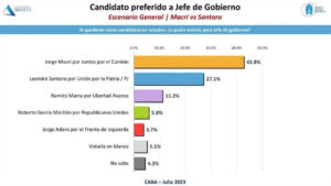 Si estos números se reflejan en los próximos comicios, Santoro quedaría en carrera para competir en segunda vuelta, para la que en Unión por la Patria se entusiasman con la posibilidad de acercarse al 40% y dar pelea hasta las últimas. De esa manera, el candidato porteño de Unión por la Patria se posicionaría como el referente opositor en la ciudad, algo que le ha venido costando al kirchnerismo dada la amplia diferencia de votos del macrismo y de las dificultades para avanzar con sus propias propuestas en la Legislatura.