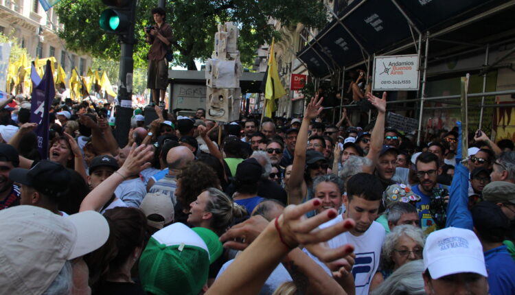 “Defendemos la educación y la democracia. ¡La escuela no se vende, se defiende! ¡La patria no vende, se defiende! No al DNU, no a la ley ómnibus”, fue la consigna con la que llegaron hasta Avenida de Mayo y San José, en donde ocurrió el episodio.