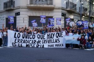 «Desde San José 1111 a la Villa 31, le llevamos a Mugica el rosario que Cristina le envió. “Lo único que hay que erradicar de las villas es la miseria”. Siempre presente»