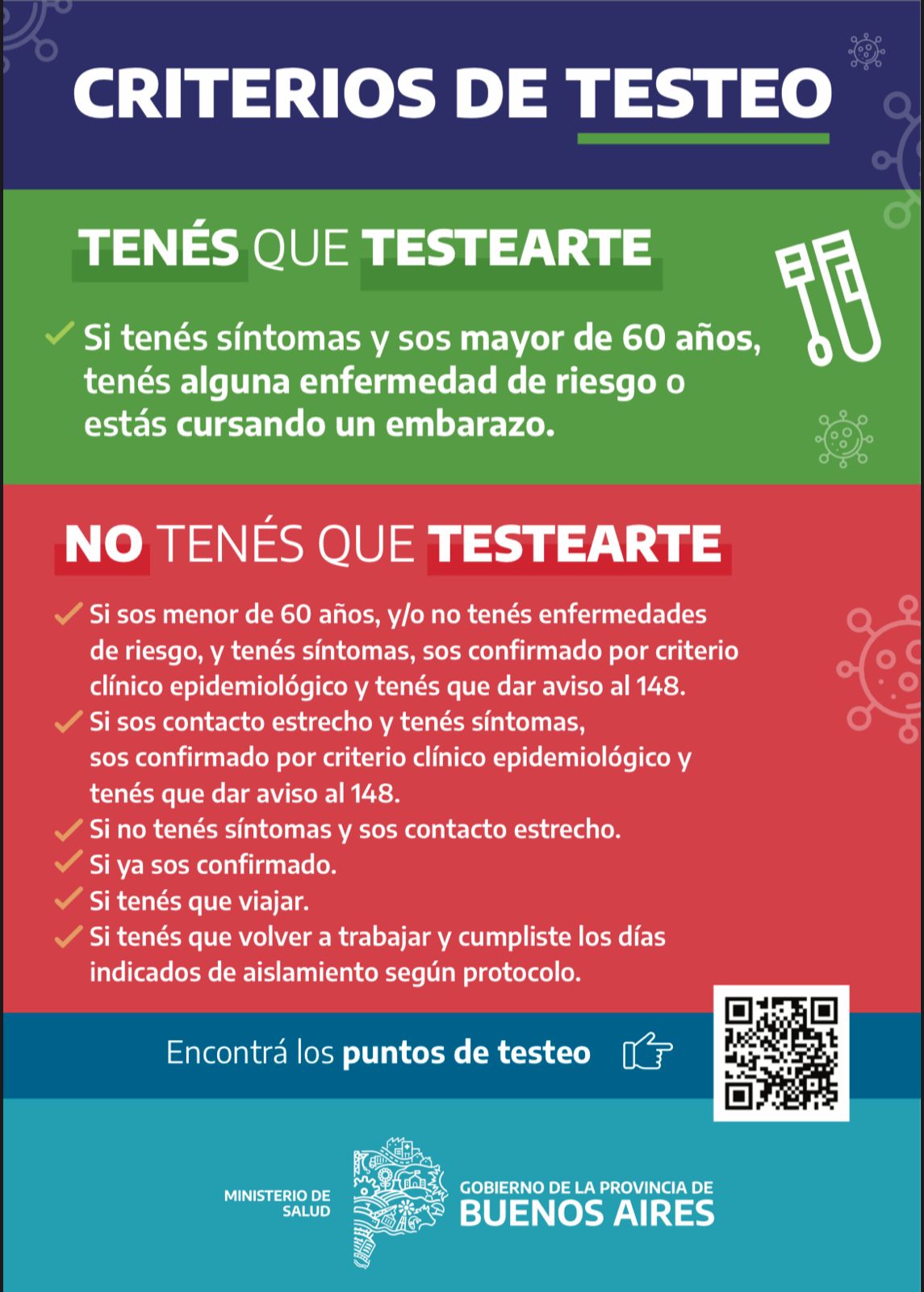 Este jueves el ministro de Salud de la provincia de Buenos Aires, Nicolás Kreplak, anunció que se restringirá el acceso a los testeos. Solo se hisopará a embarazadas, personas de riesgo y mayores de 60 años. El resto se considerará «caso confirmado por criterio clínico epidemiológico».